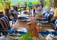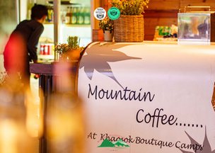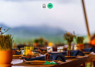 The Oxygen Restaurant at Khaasok Boutique Camps offers an enchanting dining experience, enveloped by the natural beauty of towering mountains and lush greenery.